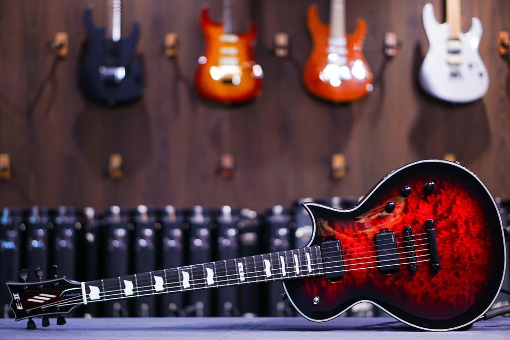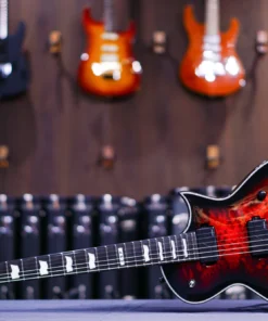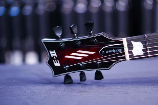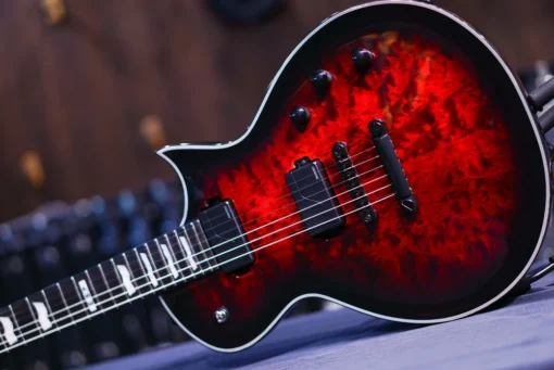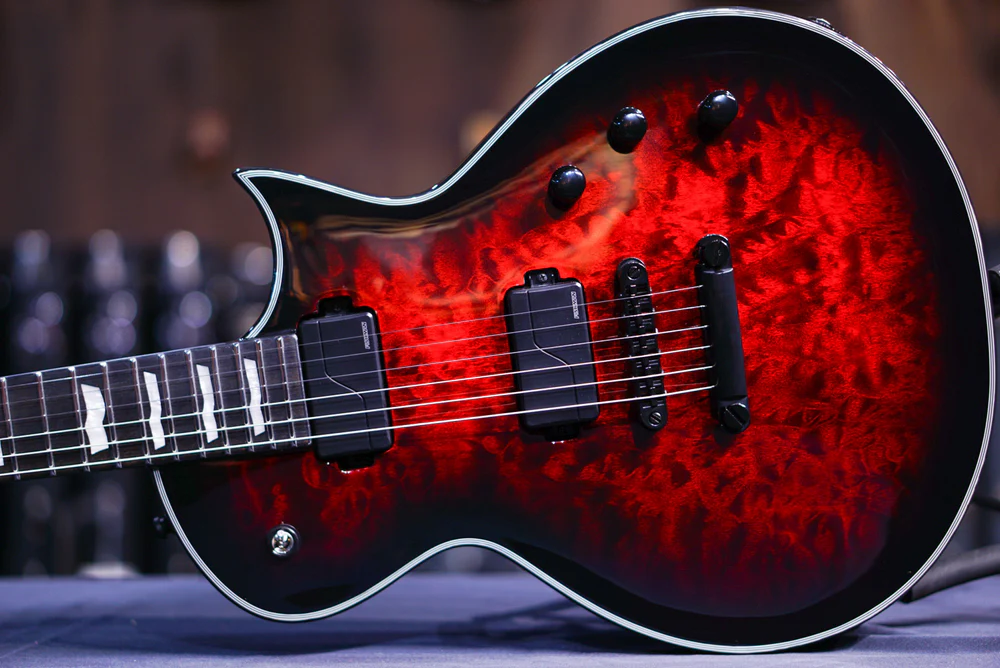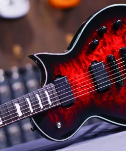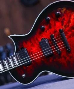 ESP E-II ECLIPSE QM FL Czarna wiśnia Sunburst to najwyższej jakości gitara elektryczna wyprodukowana w Japonii, zaprojektowana dla profesjonalnych muzyków poszukujących wyjątkowego brzmienia i grywalności. Jej mahoniowy korpus zwieńczony jest uderzającym pikowanym klonem, co zapewnia zarówno walory estetyczne, jak i bogate, rezonansowe brzmienie. Gryf z mahoniu z cienkim konturem U i satynowym wykończeniem zapewnia płynną grę na całej długości skali 24,75″. Podstrunnica z hebanu z 22 progami ze stali nierdzewnej extra-jumbo i perłowymi inkrustacjami flagi ESP poprawia zarówno wydajność, jak i styl. Wyposażona w aktywne przetworniki Fishman Fluence Modern Humbucker, ta gitara oferuje wszechstronne opcje brzmieniowe odpowiednie do różnych gatunków. Wysokiej jakości komponenty, takie jak blokowane klucze Gotoh, mostek i strunnik Gotoh TOM oraz blokady paska ESP zapewniają stabilność i niezawodność. Pokrętło tonu push-pull umożliwia łatwy wybór między różnymi brzmieniami, co zwiększa jej wszechstronność. Ten model jest wyposażony w luksusowy futerał ESP zapewniający ochronę i przenośność.