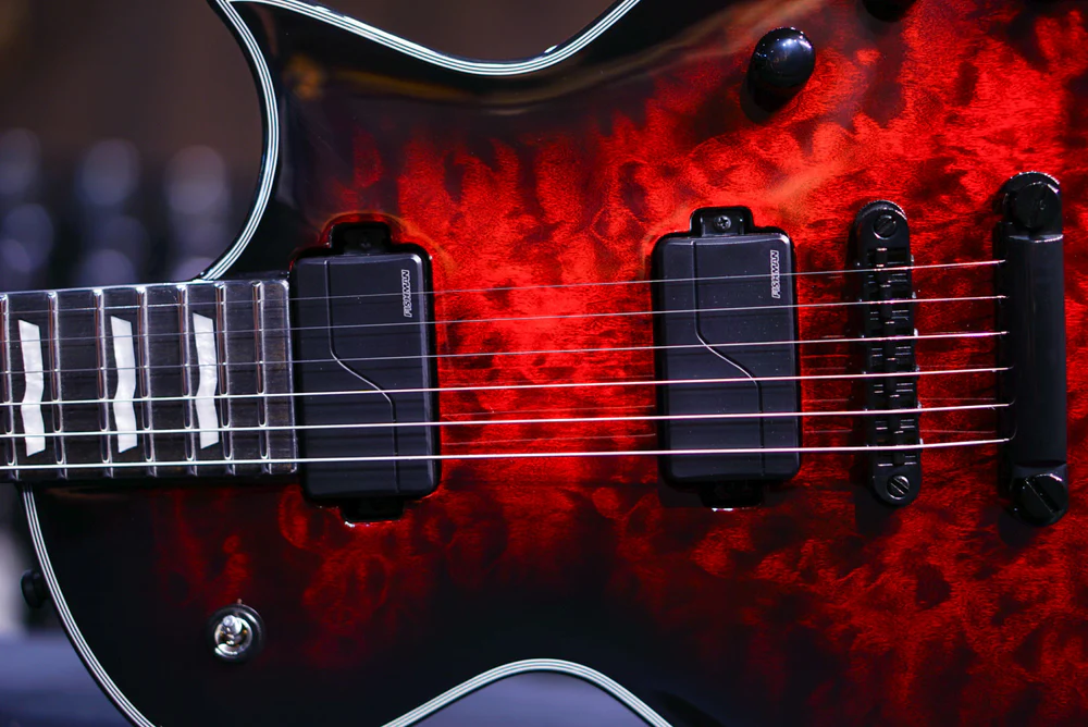 - Przetworniki: Fishman Fluence Modern Humbucker (Alnico w gryfie, Ceramic w mostku)