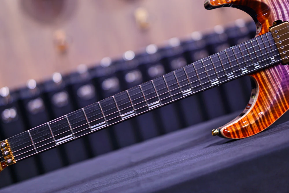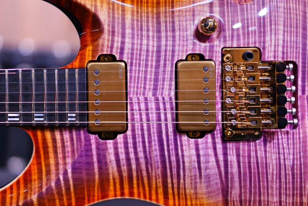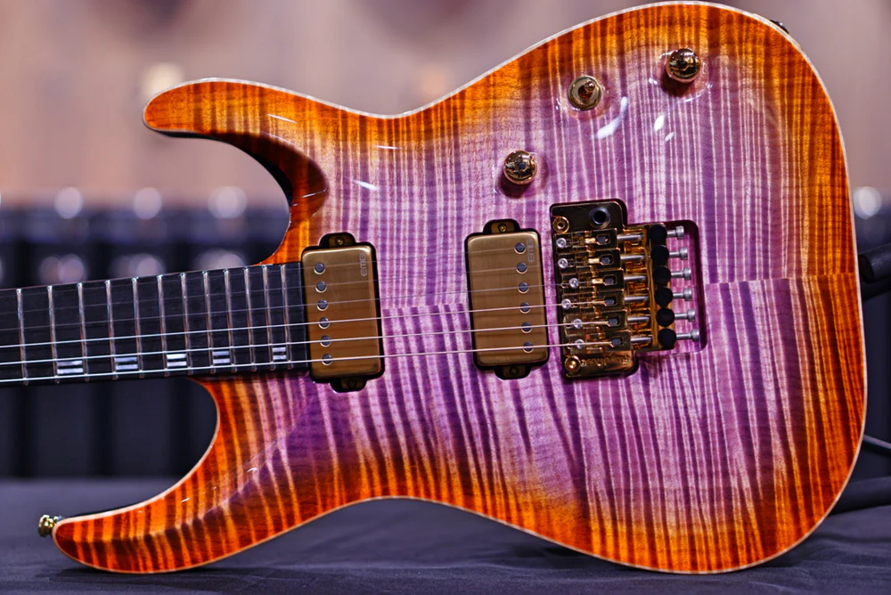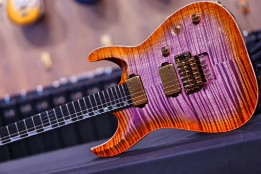 ESP Oryginalny Horizon III Odlew Metalowy Andromeda II E9301212 to najwyższej jakości gitara elektryczna, starannie wykonana przez ESP Custom Shop w Japonii. Zaprojektowana dla wymagających muzyków, może pochwalić się konstrukcją neck-thru-body, zapewniającą wyjątkowy sustain i łatwy dostęp do wszystkich 24 progów. Gitara ma korpus z olchy o grubości 47 mm, 3-częściową gryf z twardego klonu w kształcie cienkiego „U” i podstrunnicę z hebanu ozdobioną białym bindingiem. Jej uderzające wykończenie Castmetal Andromeda II nie tylko poprawia jej walory wizualne, ale także uzupełnia jej wysokowydajne komponenty. Wyposażony w przetworniki Seymour Duncan Custom Shop — ’59/Jazz Hybrid w gryfie i JB/Custom Hybrid Trembucker w mostku — oferuje wszechstronny zakres tonalny odpowiedni do różnych gatunków muzycznych. Dodatkowe funkcje obejmują mostek Floyd Rose Original, blokowane klucze Gotoh i czarny osprzęt, co przyczynia się do jego doskonałej grywalności i stabilności strojenia. Ten instrument jest idealny dla profesjonalnych gitarzystów poszukujących niezrównanej jakości i wydajności.