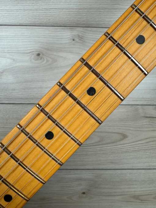 Pod maską przetworniki Ultra II Noiseless™ Vintage Tele® zapewniają słodkie krystaliczne czyste brzmienie, ostry twang i mięsisty growl, wszystko bez śladu buczenia. Nasz opatentowany przełącznik S-1™ sprytnie włącza szeregową opcję okablowania, aby uzyskać jeszcze większą różnorodność tonalną. Dodatkowe funkcje gotowe do jazdy po trasie obejmują mostek z 6 siodełkami strunowymi przechodzącymi przez korpus z chromowanymi mosiężnymi siodełkami, blokowane klucze Deluxe, radełkowane aluminiowe pokrętła i 1-warstwową anodowaną aluminiową płytkę ochronną.