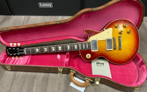 Gibson Custom Shop Les Paul™ Standard Reissue z 1959 roku to nie tylko hołd dla bezcennych oryginalnych modeli — to ich klon. Od wymiarów skanowanych laserowo po chemicznie odtworzone tworzywa sztuczne i dopasowane kolorystycznie odcienie sunburst, każdy element został oddany w niewiarygodnych szczegółach. Stanowi kulminację dziesięcioleci pracy zespołu ekspertów Custom Shop — nieustannej misji dostarczenia dokładności i autentyczności w ręce fanów. To definicja cool i najlepsza reprezentacja Les Paul Standard z 1959 roku od czasu, gdy Gibson Custom Shop zaczął produkować Historic Reissues ponad dwadzieścia pięć lat temu. Posiada Ultra Light Aging przez wykwalifikowanych rzemieślników z Murphy Lab. Wykończenie Murphy Lab Ultra Light Aged w połączeniu z lekko postarzanym osprzętem symuluje dziesięciolecia lekkiego zużycia, nadając mu unikalny charakter, klimat i wrażenie oryginalnego egzemplarza z Gibson Golden Era.
