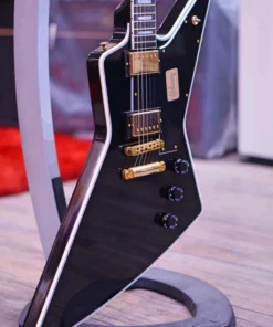 Gibson Custom Explorer Czarna Piękność to uderzająca gitara elektryczna, która łączy kultowy design Explorer z najwyższej jakości wyposażeniem Custom Shop. Wykonana z litego mahoniu, ma eleganckie wykończenie hebanowe uzupełnione wielowarstwowym wiązaniem i złotym osprzętem. Średniej wielkości szyjka z mahoniu o profilu C zwieńczona jest podstrunnicą z hebanu ozdobioną inkrustacjami z masy perłowej, oferując wyjątkową grywalność i luksusową estetykę. Wyposażona w przetworniki humbucker 490R i 498T, gitara ta zapewnia potężny i wszechstronny zakres tonalny odpowiedni do różnych stylów muzycznych. Znane rzemiosło Gibsona zapewnia najwyższą jakość i wydajność, dzięki czemu Explorer Black Beauty jest pożądanym wyborem dla wymagających gitarzystów.