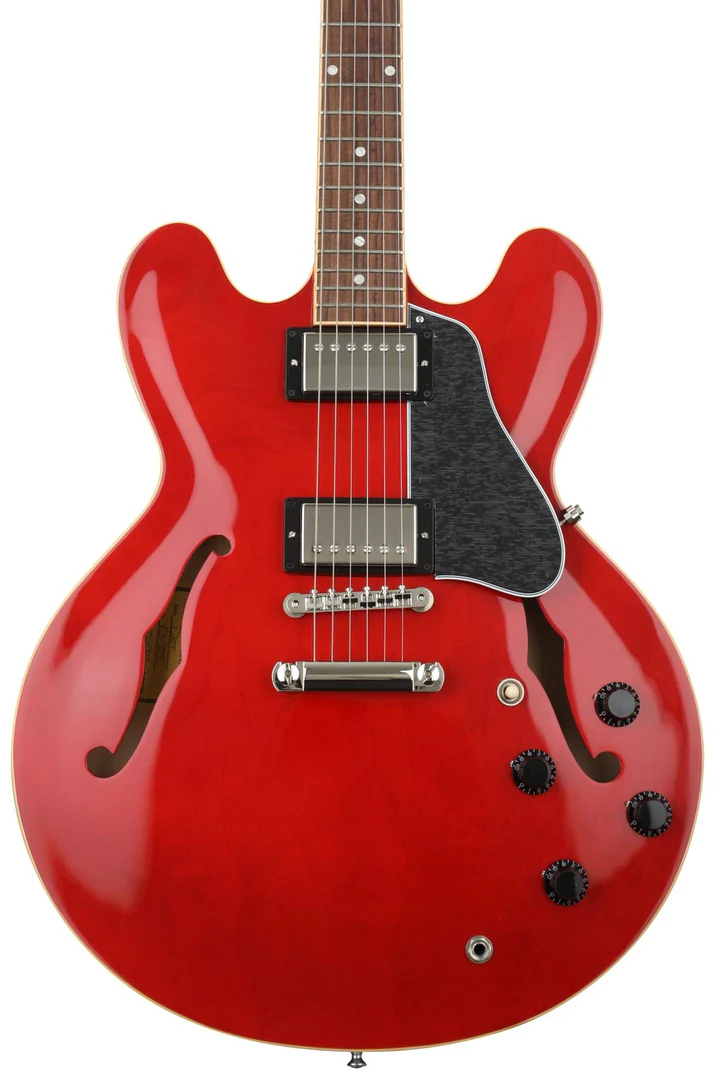 Gibson ES-335 DOT jest kamieniem węgielnym serii Gibson ES. Od swojego debiutu w 1958 roku Gibson ES-335 wyznaczył niezrównany standard. Podstrunnica z intarsjami z perłowych kropek na ręcznie walcowanej zaokrąglonej szyjce z mahoniu „C” przypomina graczom, gdzie to wszystko się zaczęło. Przetworniki humbucker MHS II są połączone z naszym ręcznie okablowanym zespołem sterującym. Rezultatem jest wszechstronny dźwięk Gibsona ES, za którym gracze tęsknią od ponad 60 lat. Stabilność strojenia i precyzyjna intonacja są zapewnione przez klucze Grover „Milk Bottle”, lekki aluminiowy mostek ABR-1 i stalowe kołki do strun.