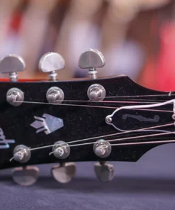 - Gryf: Wykonany z mahoniu, o menzurze 24,75″ i podstrunnicy z palisandru ozdobionej inkrustacjami w kształcie równoległoboku.