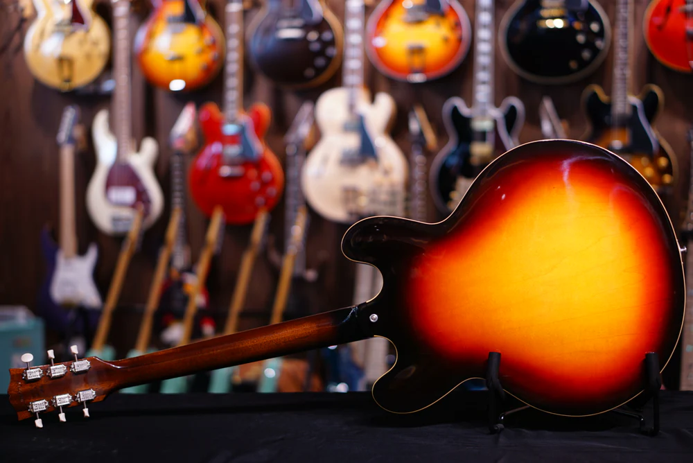 Gibson ES-330 2018 zachód słońca to cienka gitara elektryczna typu hollow-body, która mistrzowsko łączy estetykę vintage z nowoczesnymi ulepszeniami. Jej całkowicie pusta konstrukcja zapewnia bogaty, rezonansowy dźwięk, a wykończenie Sunset Burst dodaje odrobinę klasycznej elegancji. Wyposażona w przetworniki MHS P-90, oferuje wszechstronną paletę brzmień odpowiednią do różnych gatunków muzycznych. Gryf z mahoniu ciętego na ćwiartki z zaokrąglonym profilem „C” zapewnia wygodną grę, a mostek ABR-1 z tytanowymi siodełkami zapewnia doskonałą stabilność strojenia. Ten model jest dowodem zaangażowania Gibsona w jakość i innowację, co czyni go cenionym dodatkiem zarówno dla kolekcjonerów, jak i wykonawców.