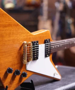Gibson Explorer ’76 Reissue 2016 Limited Własnościowe Naturalne to wyjątkowa gitara elektryczna, która oddaje hołd kultowemu projektowi Explorer z 1976 roku. Ten model z limitowanej edycji ma naturalny korpus z mahoniu uzupełniony czarną płytką ochronną i złotym osprzętem, emanując klasyczną, ale odważną estetyką. Wyposażony w przetworniki o wysokim wzmocnieniu 496R i 500T, zapewnia tłuste, mocne i agresywne brzmienie odpowiednie do różnych gatunków muzycznych.