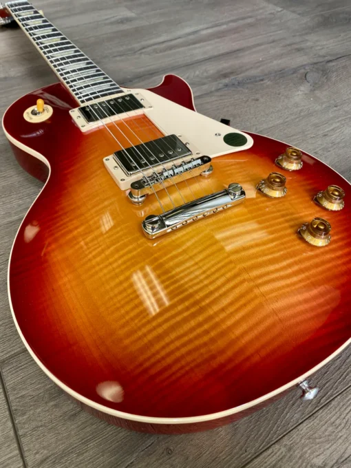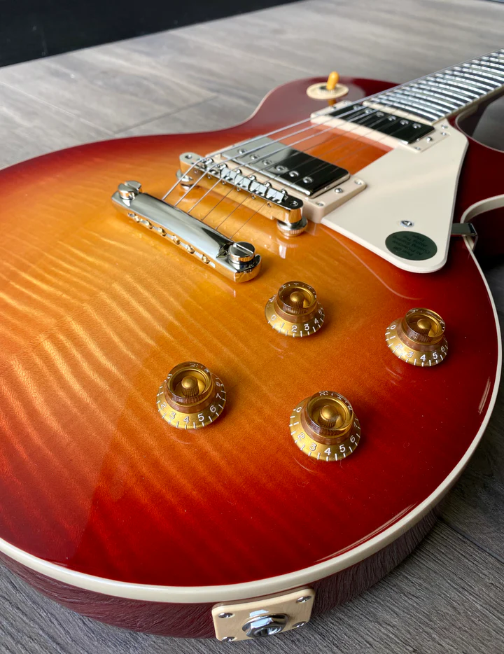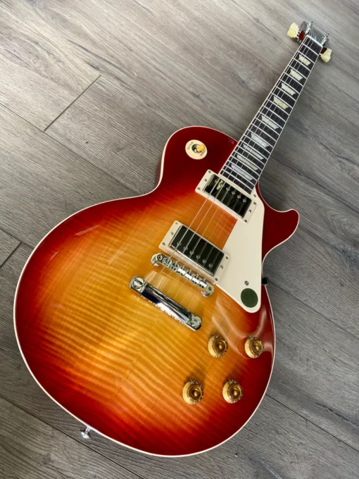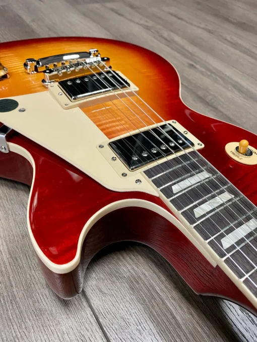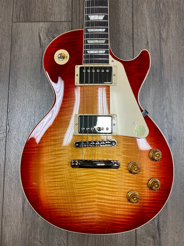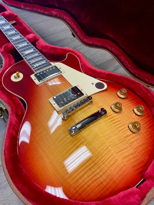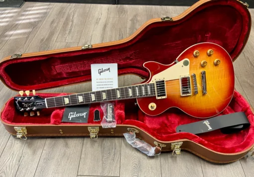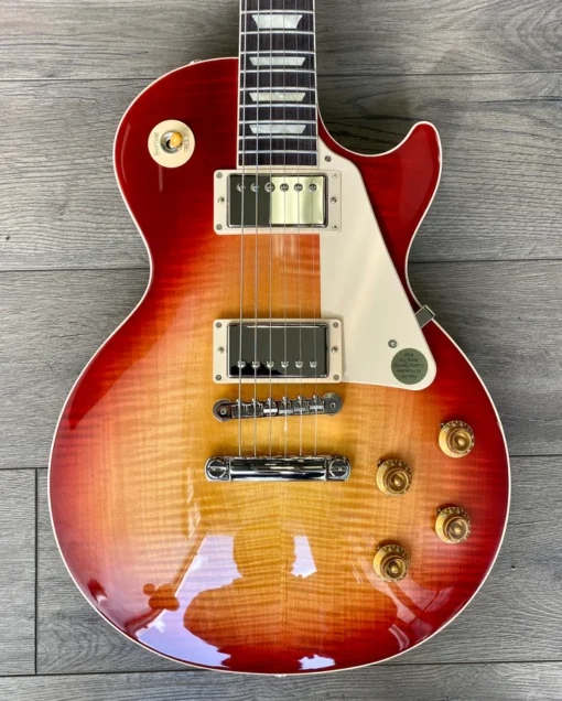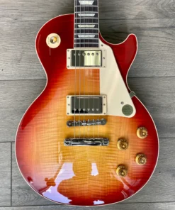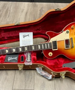 Nowy Les Paul Standard powraca do klasycznego projektu, który uczynił go istotnym, granym i kochanym — kształtując brzmienie przez pokolenia i gatunki muzyczne. Oddaje hołd Złotej Erze innowacji Gibsona i przywraca autentyczność do życia. Les Paul Standard 50 ma solidny korpus z mahoniu z klonowym wierzchem, zaokrąglony gryf z mahoniu w stylu lat 50. z podstrunnicą z palisandru i trapezowymi intarsjami. Jest wyposażony w ABR-1, klasyczny mostek Tune-O-Matic, aluminiowy strunnik, zabytkowe klucze deluxe z przyciskami keystone i pokrętła z postarzanego złota. Skalibrowane przetworniki Burstbucker 1 (gryf) i Burstbucker 2 (mostek) są wyposażone w magnesy AlNiCo II, potencjometry stożkowe audio i kondensatory Orange Drop.