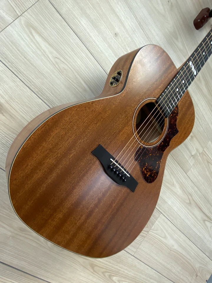 - Tył z litego mahoniu, boki z warstwowego mahoniu i wierzch z litego mahoniu dają bogate, pełne brzmienie i solidną głośność