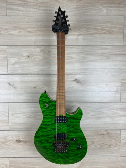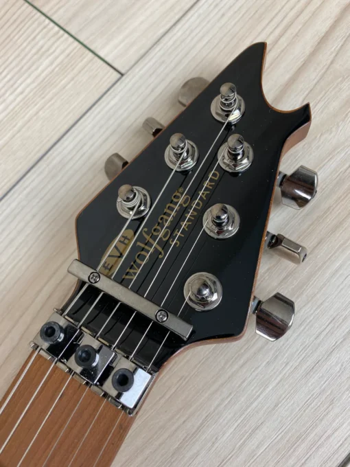 Dwa humbuckery EVH® Wolfgang zamontowane bezpośrednio do korpusu zwiększają przenoszenie drgań, co skutkuje podtrzymaniem przez wiele dni. Czarne radełkowane pokrętła regulacji tonu i głośności zostały dostrojone do rygorystycznych specyfikacji Van Halen — gładkie potencjometry 500k ułatwiają znalezienie unikalnego brzmienia, zachowując jednocześnie czysty, wysoki blask przetworników Wolfgang. Mostek Floyd Rose® Special marki EVH i nakrętka blokująca R2 stale utrzymują instrument w stroju nawet przy najgłębszych nurkowaniach whammy i rżeniu konia.