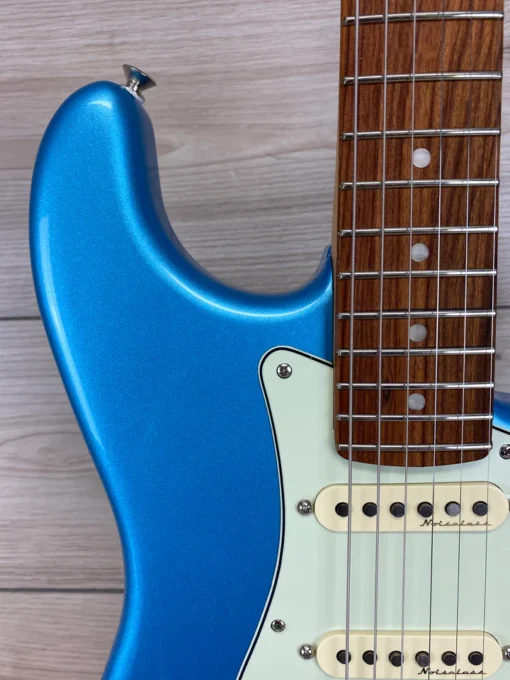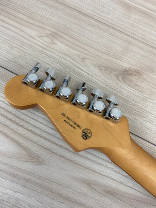 Sercem tego Strata® jest trio przetworników Player Plus Noiseless™ – jasnych i wrażliwych na dotyk, oferujących klasyczne brzmienie Strata bez brumienia. Potencjometr push-pull na regulatorze tonu dodaje przetwornik gryfu do przełączania pozycji 1 i 2, co daje dwa dźwięki, których zwykle nie ma Strat®. Jedwabisty satynowy gryf Modern „C” Player Plus Strat® pasuje do dłoni jak ulał, a gładkie, zaokrąglone krawędzie zapewniają najwyższy komfort. Podstrunnica o promieniu 12” i 22 progi medium jumbo ułatwiają płynne prowadzenie i bezdławikowe podciąganie. Gładkie i responsywne, 2-punktowe tremolo zapewnia klasyczne efekty vibrato, podczas gdy blokowane klucze zapewniają solidne strojenie i szybką i łatwą wymianę strun.