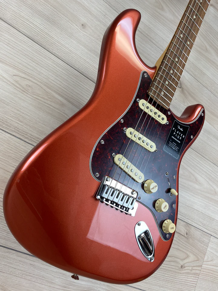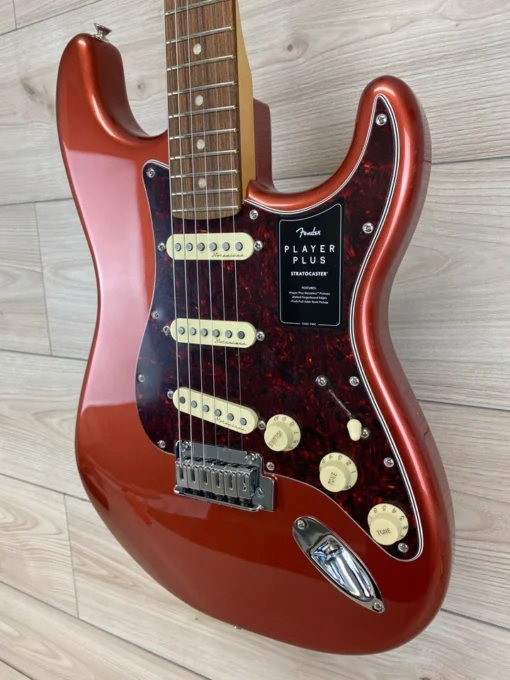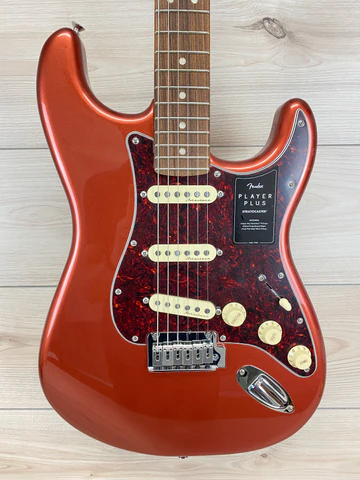 Gitara elektryczna Fender Player Plus Stratocaster w kolorze Aged Cukierkowe Jabłko Czerwone