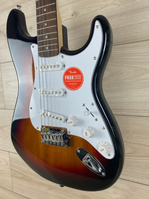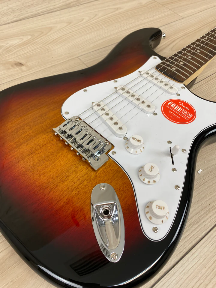 Doskonała brama do rodziny Fender®, Squier® Affinity Series™ Stratocaster® oferuje legendarny design i kwintesencję brzmienia dla dzisiejszych aspirujących bohaterów gitary. Ten Strat® ma kilka przyjaznych dla gracza udoskonaleń, takich jak cienki i lekki korpus, smukły i wygodny profil gryfu w kształcie litery „C”, 2-punktowy mostek tremolo dla doskonałej akcji tremolo i uszczelnione odlewane klucze z dzielonymi trzonkami dla płynnego, dokładnego strojenia i łatwego ponownego zakładania strun. Wyposażony w trzy przetworniki Squier Single-Coil Strat z 5-pozycyjnym przełącznikiem zapewniającym różnorodność brzmienia, która przełamuje granice gatunków, ten model jest gotowy towarzyszyć każdemu muzykowi na każdym etapie jego rozwoju.