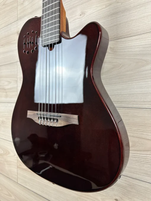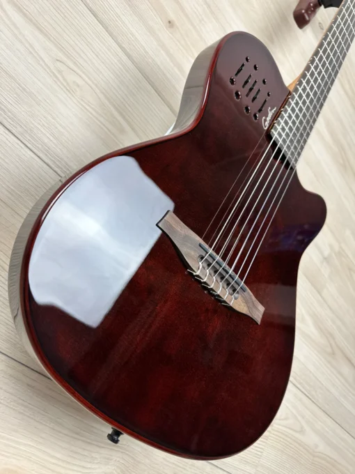 Jeśli szukasz czystego, uporządkowanego instrumentu z naturalnym wzmocnionym brzmieniem strun nylonowych, nie szukaj dalej. Godin Multiac Mundial już tu jest i czeka na Ciebie.