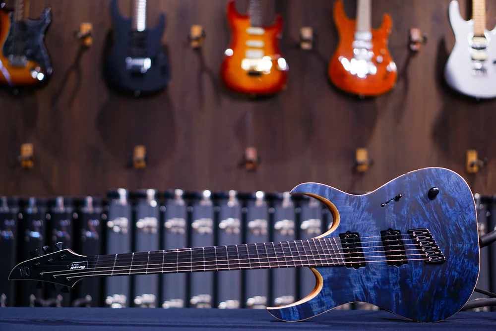 Mayones Duvell Elite 6 VF BKP to gitara elektryczna klasy premium, słynąca z wyjątkowego wykonania i nowoczesnego wzornictwa, przeznaczona dla wymagających gitarzystów poszukujących najwyższej klasy osiągów i estetyki.