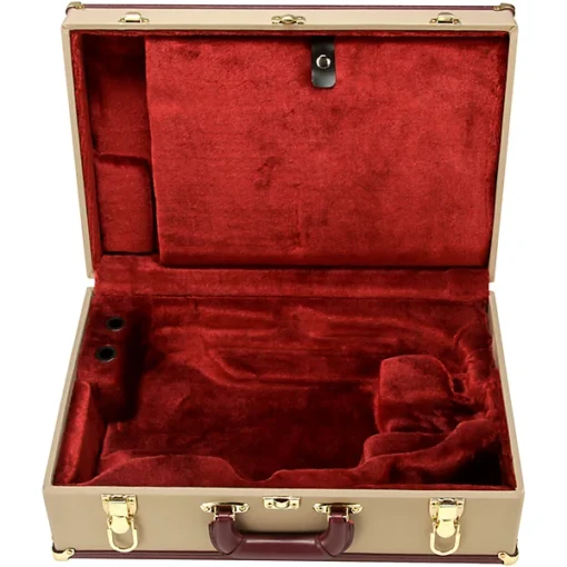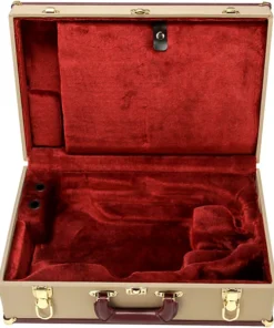 Wszystkie trąbki i flugelhorny Phaeton są standardowo wyposażone w „Pro-deluxe” vintage’owy, pokryty tweedem futerał wykonany w całości z drewna z teksturowaną brązową oprawą/lamówką, głębokim pluszowym bordowym wnętrzem i luksusowym welurowym pokrowcem na instrument. Solidne mosiężne okucia dopełniają tę ogromną, luksusową obudowę.