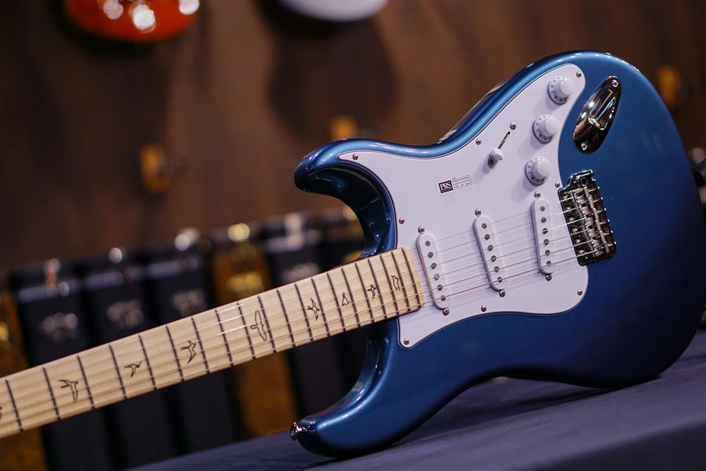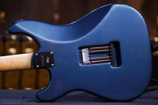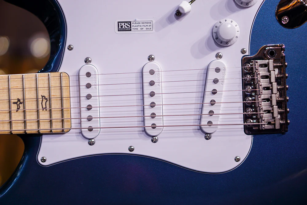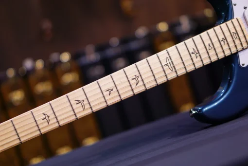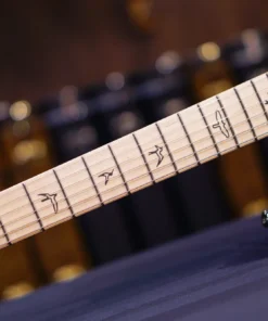 PRS Silver Sky John Mayer Signature w kolorze Venetian Niebieski to starannie wykonana gitara elektryczna, która łączy w sobie estetykę vintage z nowoczesnymi ulepszeniami, odzwierciedlając wizję Johna Mayera i słynne rzemiosło PRS. Ten model ma korpus z olchy i przykręcaną szyjkę z klonu, zapewniając zrównoważoną podstawę tonalną. Podstrunnica z palisandru ma promień 7,25″ i jest ozdobiona charakterystycznymi dla PRS małymi inkrustacjami w kształcie ptaków, zapewniając zarówno wygodę, jak i atrakcyjność wizualną. Wyposażona w przetworniki single-coil 635JM, Silver Sky zapewnia pełne, okrągłe dźwięki z muzycznym high-endem, który unika szorstkości. Stalowy mostek tremolo PRS i blokowane klucze w stylu vintage zapewniają stabilne strojenie i płynną grę. Odwrócona główka PRS została zaprojektowana tak, aby dostosować się do stylu gry Mayera i zachować stałą długość strun za nakrętką, co poprawia intonację. Wykończona w uderzającym kolorze Venetian Blue, ta gitara łączy klasyczne elementy wzornictwa z nowoczesnymi cechami wydajnościowymi, dzięki czemu jest wszechstronnym wyborem dla wymagających graczy.