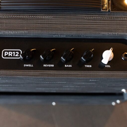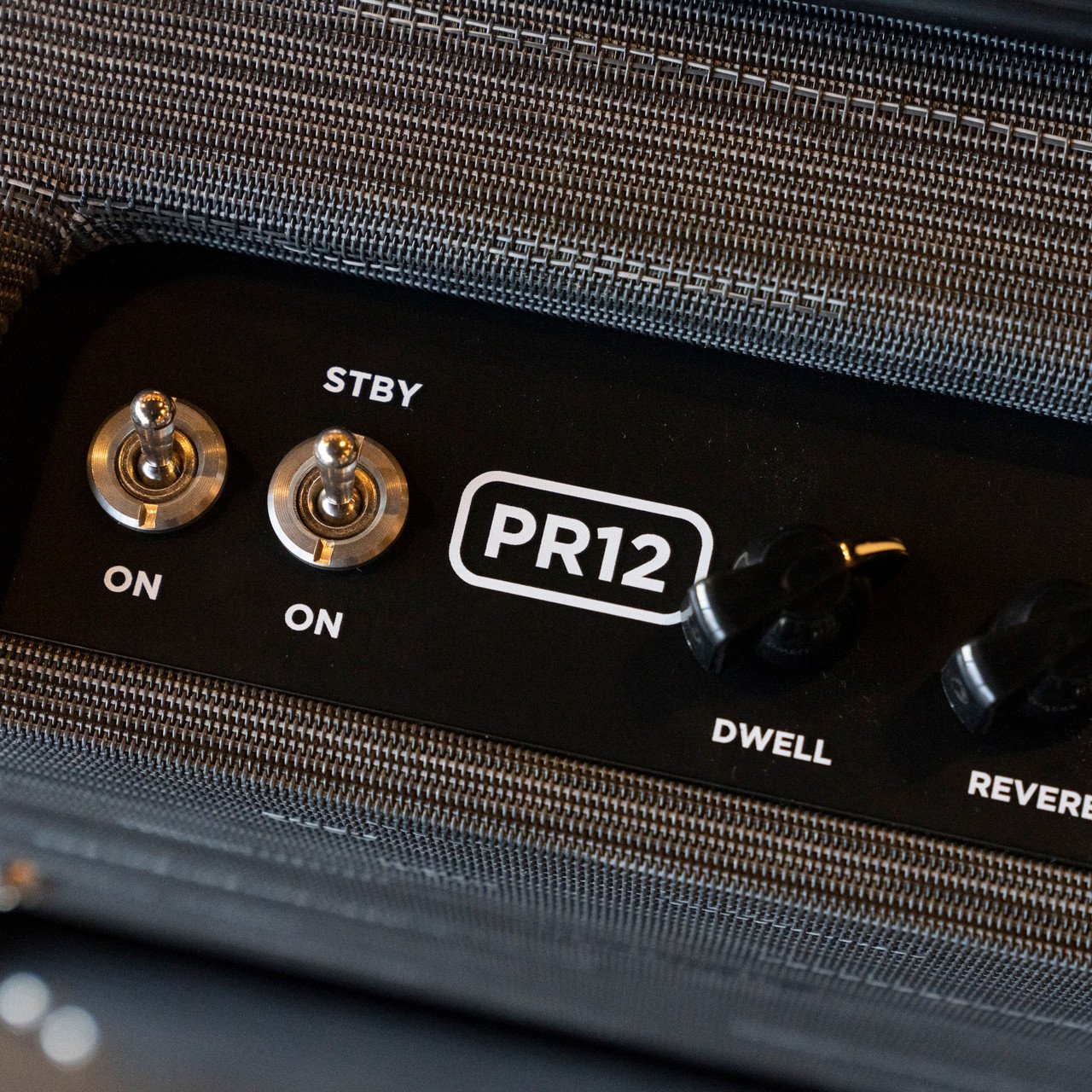 PR12 zaczyna od klasycznego czarnego brzmienia, a następnie wzmacnia dolny koniec, dając zasilaczowi wzmacniacza więcej mocy, aby nie pierdział jak oryginały. Pogłos został również zmodyfikowany, aby dodać kontrolę Dwell. Kontrola Dwell pozwala kontrolować ilość zaniku w pogłosie. Pozwala to uzyskać bardzo wysoki miks pogłosu bez wypłukiwania brzmienia gitary. Kontrola basów i sopranów współdziała ze sobą, aby zapewnić szeroki zakres brzmień. Kolumna to specjalnie zaprojektowana stała obudowa. Stała konstrukcja obudowy pozwala całej obudowie rezonować z głośnikiem, dając mu znacznie większy dźwięk w tak małej obudowie. Podobnie jak wszystkie wzmacniacze Morgan, PR12 KOCHA pedały i dobrze współpracuje z każdym pedalboardem.