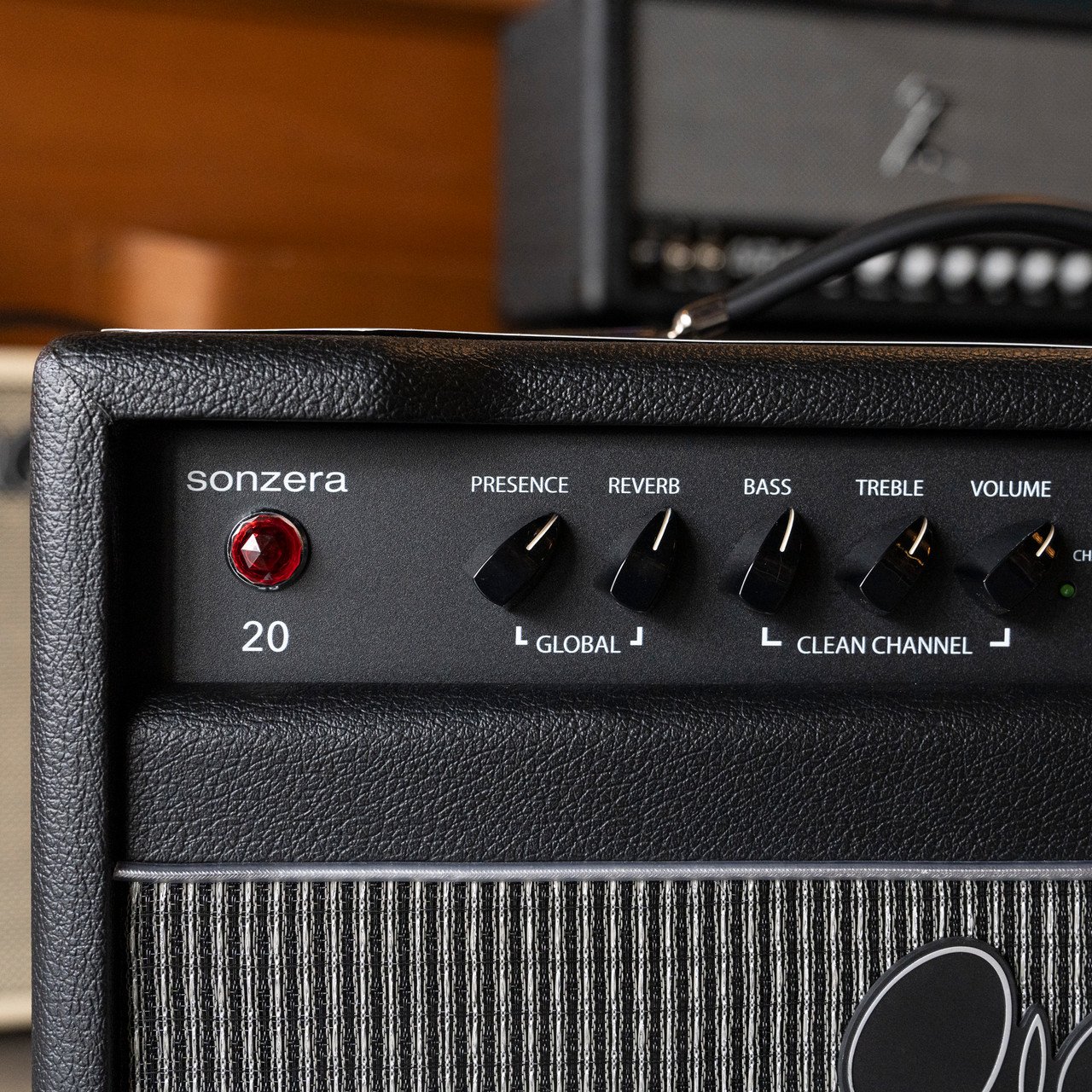 Sonzera 20 to wzmacniacz combo o średniej mocy 20 watów z dwoma niezależnie sterowanymi, przełączanymi nożnie kanałami zaprojektowanymi dla maksymalnej wszechstronności. Czysty kanał zapewnia pełne, trójwymiarowe dźwięki przypominające amerykańskie wzmacniacze z połowy lat 60. Kanał wzmocnienia jest powiązany z obwodem kanału czystego, dzięki czemu można go skonfigurować tak, aby działał jako wzmocniony kanał czysty lub manipulować nim tak, aby kanały brzmiały jak dwa zupełnie różne wzmacniacze (kanał wzmocnienia można ustawić od lekkiego do bardzo mocnego zniekształcenia, po prostu używając elementów sterujących napędem i poziomem). Jasny przełącznik na kanale wzmocnienia został starannie dostosowany, aby zapewnić znajome wysokie tony i jest szczególnie skuteczny w przypadku niskich strun, ustawień przetwornika gryfu i z pojedynczymi cewkami, podczas gdy odpowiedź niskiego tonu kanału wzmocnienia jest pełna, zwarta i wyraźna.